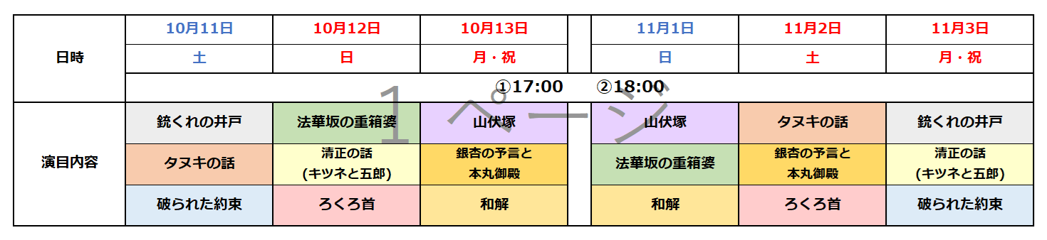 ■時間:①17時/②17時30分/③18時/④18時30分 (15分~20分程度)