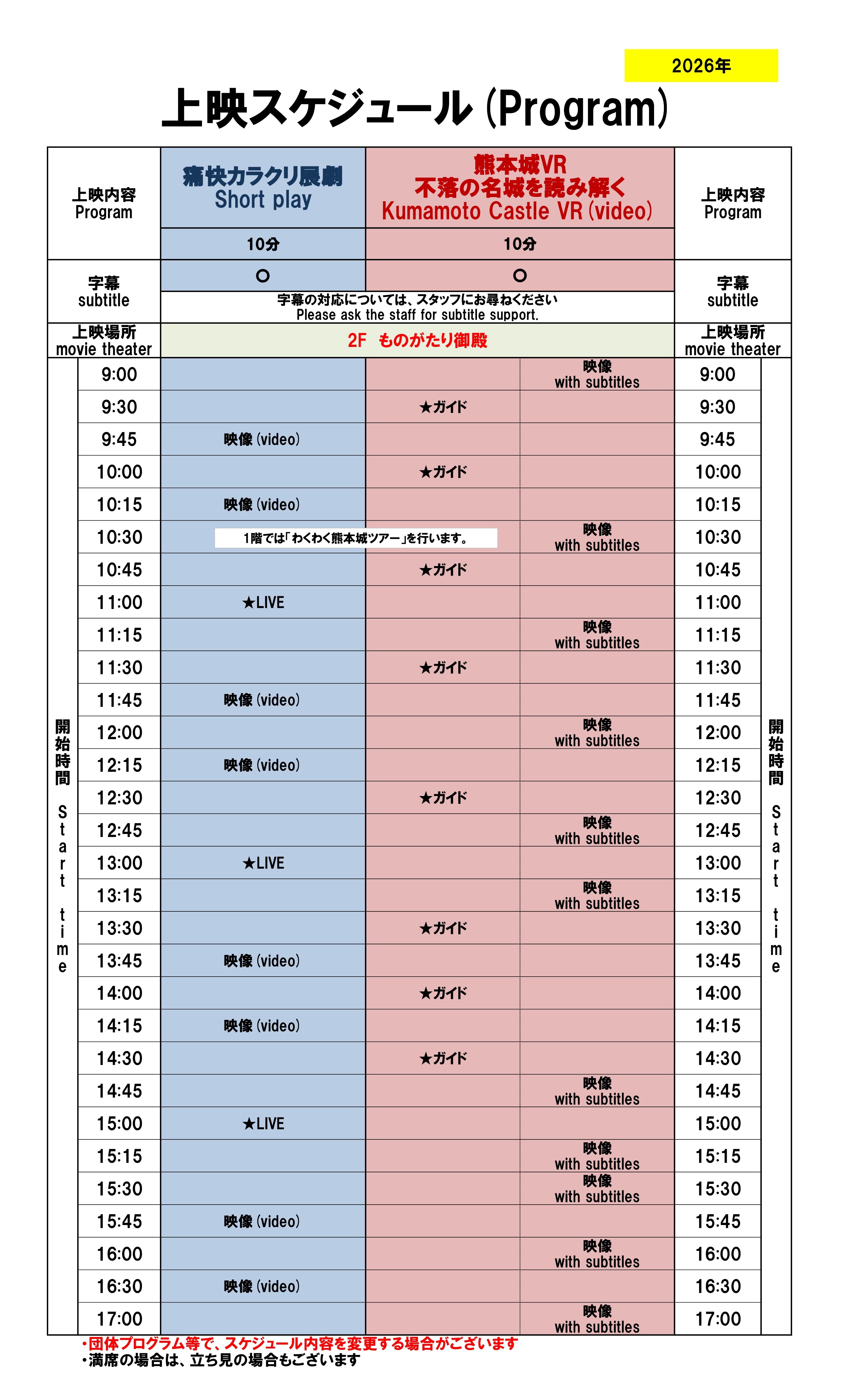 ※演目プログラムは、イベント・時期により変更する場合がございます。予めご了承ください。